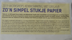 2018 februari: actie origami workshop bibliotheek Twello